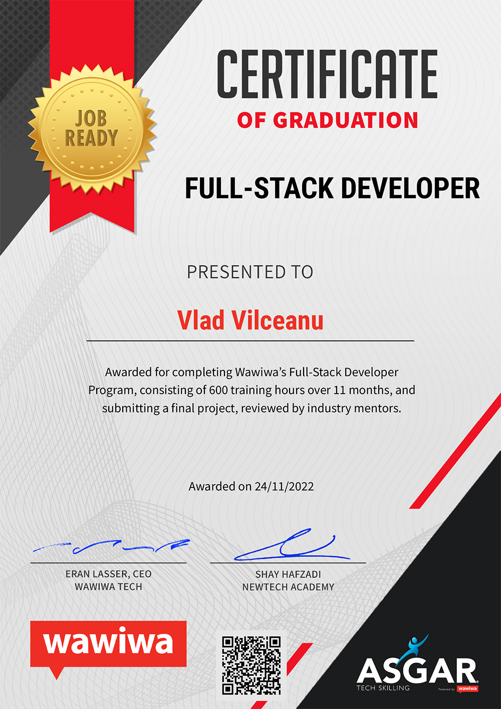 Al finalizar nuestros programas, los participantes obtienen una certificación que acredita las habilidades y conocimientos adquiridos en áreas clave de tecnología e innovación. Esta certificación está respaldada por Wawiwa, organización internacional líder en educación tecnológica, y valida la preparación del talento para enfrentar retos reales del entorno empresarial.